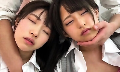 While her big jugs are rubbed the lovely Japanese chick gets a