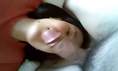 Asian Teen Blowjob and Cum in mouth - Sexy Asian Teen Energetically Sucks Immense Cock and Swallows